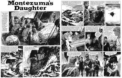 Montezuma’s Daughter is the most modern story, superbly illustrated by Jesus Blasco, perhaps best known for his work on Steel Claw and Invasion for 2000AD. In the story, Thomas Wingfield sets off to avenge the murder of his mother. After a brush with the Spanish Inquisition, shipwreck and slavery, his search leads him to the shores of Mexico where he is captured by the Aztecs. He is taken to the emperor who will decide his fate. Then the Spaniards arrive…