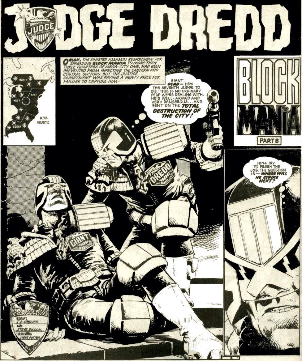 “We both drew for the same comic – 2000AD – and were often in the same issue together, although strangely, I never actually met him. For me, his high points as an artist were his first few Judge Dredd strips, such as this from Prog 205 and the legendary ‘Block Mania’ storyline.