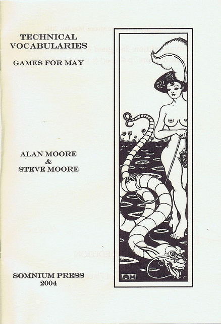 One of the more obscure of Alan Moore‘s works is Technical Vocabularies, a poetry collection he and Steve Moore produced in 2004 in very limited numbers. Now, Alan and Steve have allowed Padraig O Méaloid to post it online on Glycon, his Alan Moore obsession site.