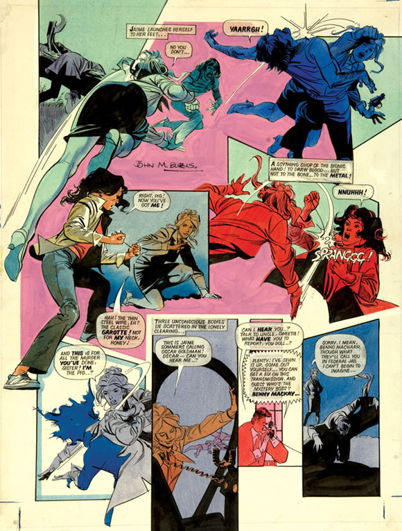 In addition to the Bellamy art, there’s also more comic work on offer including Look and Learn pages by Ron Embleton, Battlestar Galactica art from Look-In by Martin Asbury, a page of Frankie Stein by Ken Reid (and some of his great World Wide Weirdness pages from Whoopee), s1977 Bionic Woman art by John M. Burns for Look-In, Buster original front cover artworks from the 1980s by Reg Parlett, plus pages of The Broons and Oor Wullie by Dudley Watkins – the latter a regular staple of these fantastic ComPal auctions.
