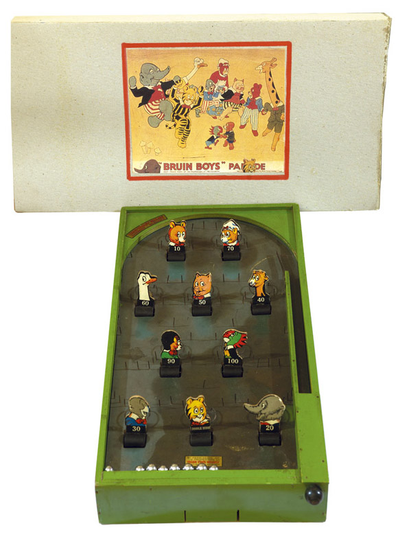 Tiger Tim is also represented with his own Bruin Boys’ Bagatelle Game, a rare survivor from the 1920s and in full playable order at lot 42. Beano, Dandy and Magic early issues published by DC Thomson are in evidence from 1938 and 1939 – including The Dandy‘s first April Fool (Issue 18) and Christmas numbers.