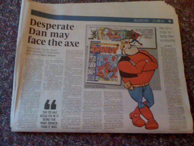 If there’s an online version of the ST feature, which was written by Marc Horne, it must be behind the newspaper’s paywall, but Deadline News has pretty much lifted the entire piece for its site and published a similar article here (“Desperate Dandy: comic’s celebrity relaunch ‘backfired'”), which includes some of my comments and those of Kid Robson, minus a response from Dandy artist and British comics expert Lew Stringer.