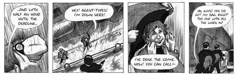 The website – www.caption.org – includes info on how to order the limited edition T-Shirt designed by Sarah MacIntyre, pictured above, which you can pre-order and pick up at Caption. Also, exclusively available at the event is the Caption 2012 programme featuring a brand new jam comic – ‘How I spent my summer holiday’ – by Hannah Berry (see above), Richy K. Chandler, Brick and more…