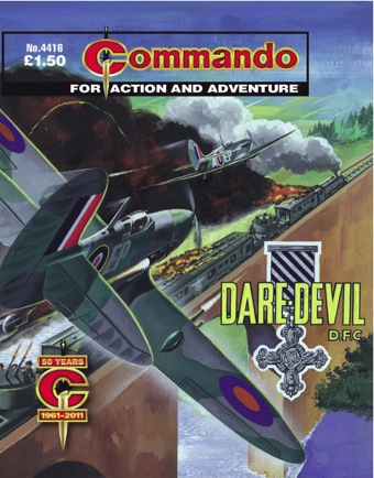 “Ken Barr’s cover sets the tone for the tale wonderfully brought to life by Peter Ford’s artwork — his Spitfires look set to fly out of the pages of this story. I can only say a big thank you to Commando’s first editor, Chick Checkley, for commissioning it.”