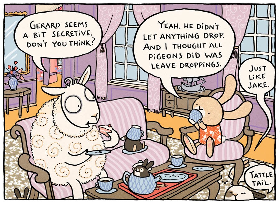 A few times they got me into a real panic and I’d ring up my DFC colleague Woodrow Phoenix, who lives nearby. He would patiently look at where my strip had gone and then walk me through to the end of it. It’s been the same working in a studio with Gary Northfield; it’s shown me that endings aren’t magic, that much of the job just requires focusing and taking things to their logical conclusion, and then one step beyond. I think it’s the ‘one step beyond’ that looks like magic to the rest of us. (I think DFC artists James Turner and Jamie Smart live in the land of one step beyond.)