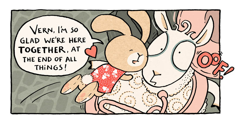 Then the opportunity came up and I cheekily promised David Fickling I could do a page a week of comics for The DFC. I practically had my fingers crossed behind my back when he asked me if I could do it; I had absolutely no idea if I could, and I sweated bullets. But I approached Vern and Lettuce like a children’s book, just drawn within panels instead of pages, and the editor didn’t ask me to stop, so I figured it must be okay. I was overwhelmed when people started telling me they liked it.