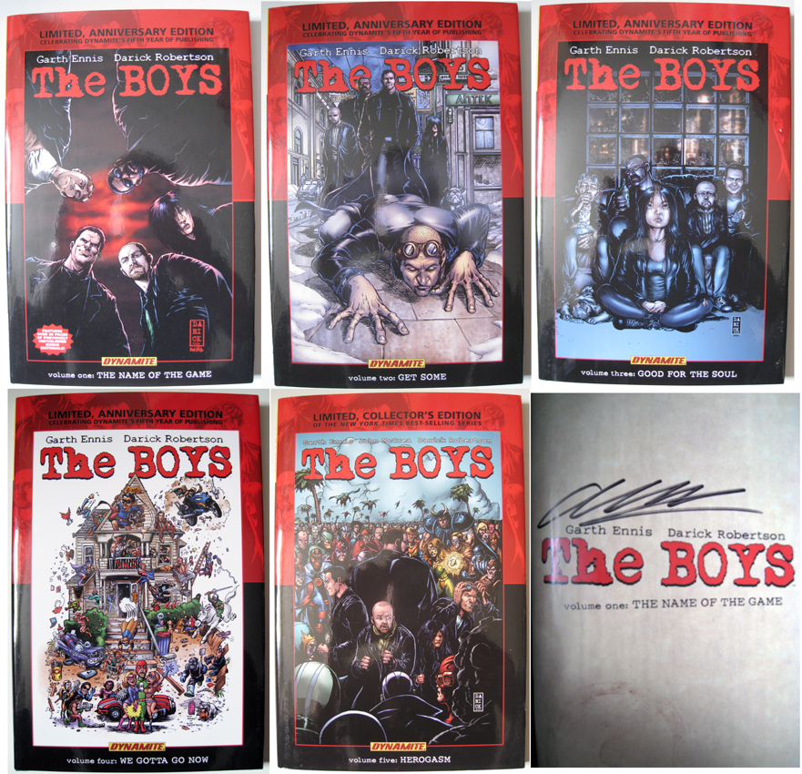 • The Boys Limited Anniversary Edition hardcover graphic novel set (1-5) signed by Garth Ennis