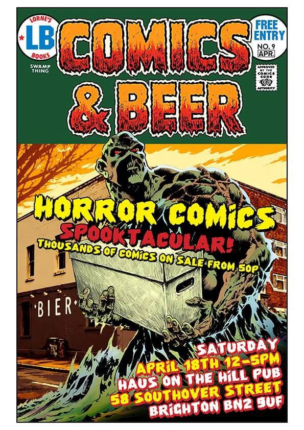 The next Comics and Beer event organised by Lorne Brown at Haus On The Hill in Hanover, Brighton, is a “Horror Comics Spooktacular” and takes place on Saturday 18th April.