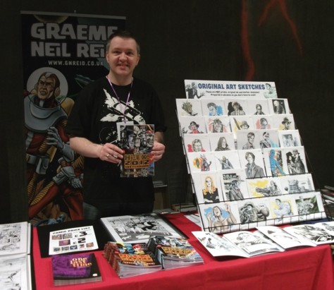 Another title that Colin provided the cover for is the 2012 edition of the A5 size Doctor Who comic Doctor WTF?! Contributor James Feist (left) and editor Owen Watts were there to sell both issues of this title which chronicles short adventures of ‘other’ incarnations of the Doctor.