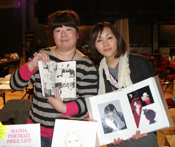 Manga artists Chie Kutsuwada (left) and Inko (right) were some of the hardest working of the creators over the course of Hi-Ex’s two days. Both seemed to have a never ending stream of attendees wanting their portraits drawn manga style with Inko even having Cam Kennedy sit for her.