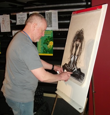 From pink fairies to something rather darker and artist John Higgin’s RazerJack, the death-bitch from the Twist Dimension. To promote RazerJack, John produces illustrations at each of the conventions that he attends and here is the image that he was working on on the Sunday at Hi-Ex.