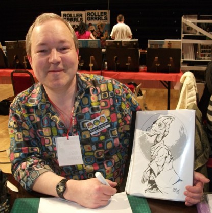 Having taken a lot of photos of the various creators at the Hi-Ex comics convention, which took place at the Eden Court complex in Inverness last weekend, there was never going to be enough room in the main downthetubes review of the con to include all the images. Instead we present a selection of those images of the creators along with links to their websites, blogs and/or Facebook pages. They are in no particular order and the first part of this photo feature is here.