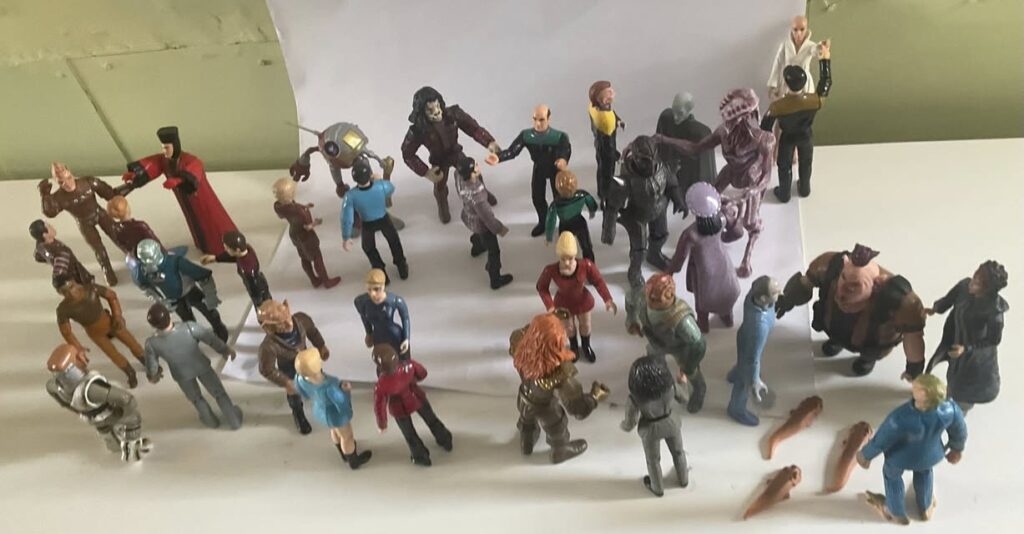Bridge crews, aliens, creatures and guest stars all found their way into 4.5″ form, alongside play sets and shuttlecraft, allowing collectors to explore strange new worlds of their own.