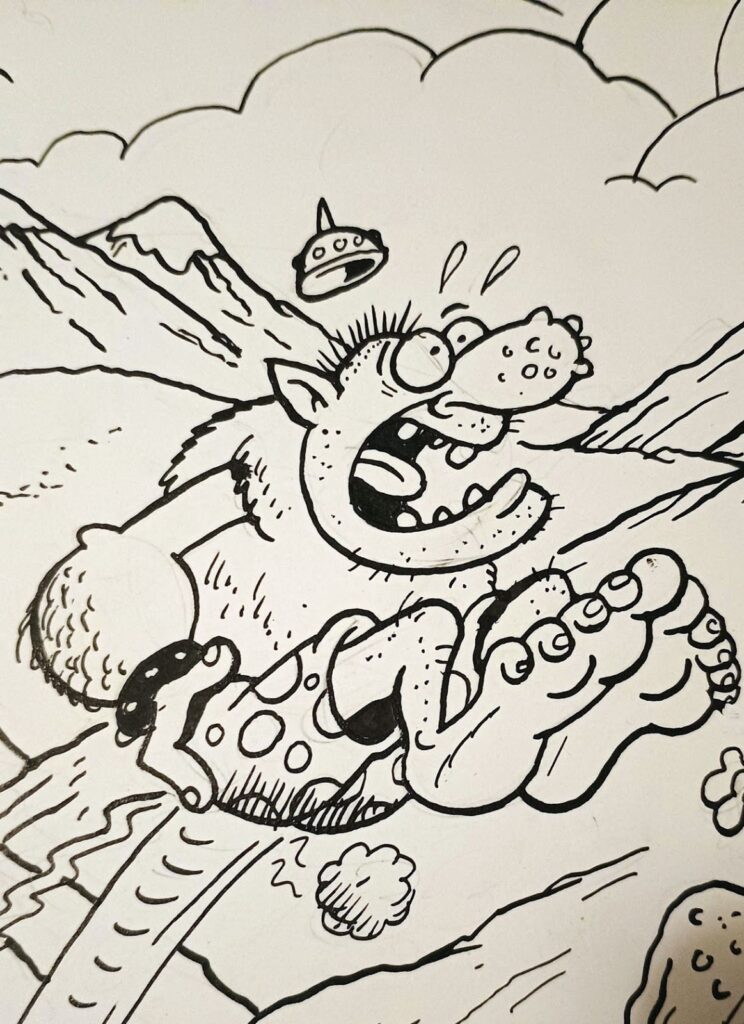 Original comic art featuring Daleks! Lew’s original artwork for a “Daft Dimension” comic strip he did for Doctor Who Magazine No. 622 (November 2025)