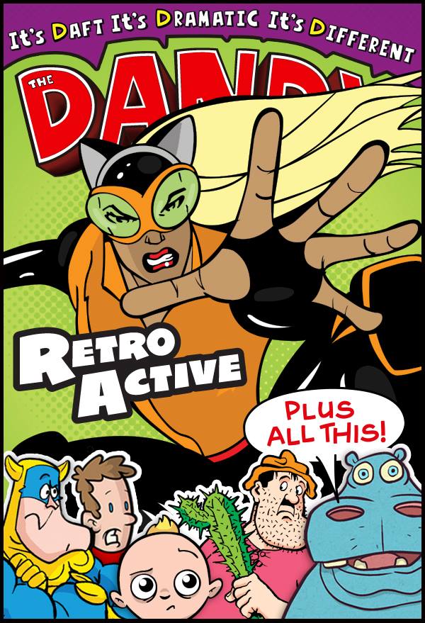 Kat and the crew from Retro-Active face an explosive end to a rooftop rescue, Bananaman has a face-off with the ultra-naughty League of Super Villains, there’s some (nearly) bare-faced cheek as Desperate Dan tries to take a bath in private, Harry’s Hippo doesn’t want to face the dentist after stuffing his face with junk food, and Brassneck’s facing up for a spot of star-gazing!