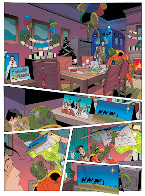 | A page from one of the 2012 Doctor Who Adventures Christmas stories, written by Eddie Robson, drawn by John Ross, colour by Alan Craddock. |