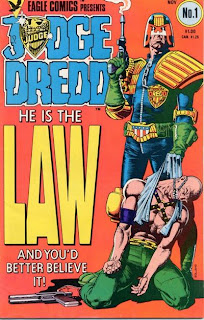 Judge Dredd was first published in US comic format in 1983, one of several Eagle Comics reprint titles, and the magazine Comics Revue republished episodes of the Judge Dredd newspaper strip which was first published in the Daily Star. Don Markstein’s Toonpedia notes DC Comics licensed the character in 1994, publishing original Dredd stories for two years as well as running a reprint series. Dredd has also appeared in several crossover comcis with US comic characters, including Batman, Lobo and the Dark Horse Comics’ licensed version of 20th Century Fox’s Predator in 1997.