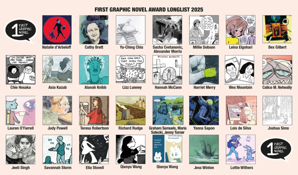 Announcing the longlist at the Lakes International Comic Arts Festival in Bownesson-Windermere today, Emma Hayley said: ‘This year the Award received a massive 220 entries, a 30% increase since 2023, giving the judges a very difficult task to choose who should go forward! I’m grateful to my fellow judges for all their hard work, and delighted that we have selected 30 entrants to be longlisted for the next stage of the competition.