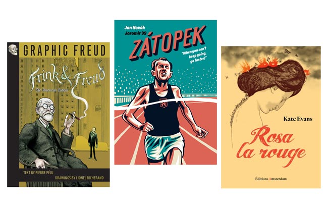 Both Frink and Freud, written by Pierre Péju and translated into English by Edward Gauvin, with art by Lionel Richerand, and Zátopek, written by Jan Novák with art by Jaromír 99, are available in English from SelfMadeHero.