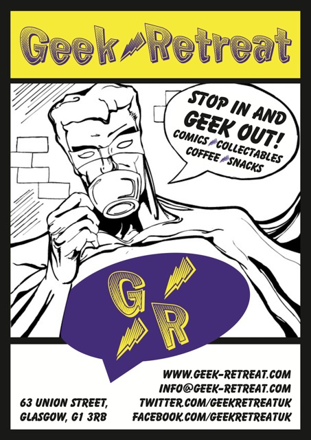 Geek Retreat is at 63 Union Street, Glasgow. You can follow Geek Retreat on twitter @GeekRetreatUK, and keep up to date with all the latest events on the website at www.geek-retreat.com and www.fb.me/geekretreatuk