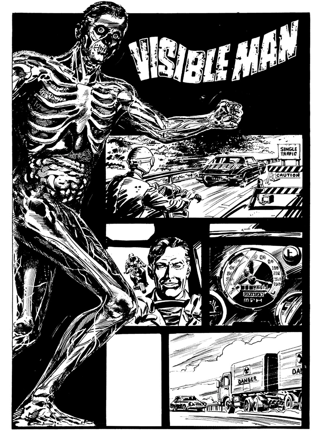 | Artwork for ‘The Visible Man’, a strip considered for the launch of 2000AD View the comic’s original dummy |
