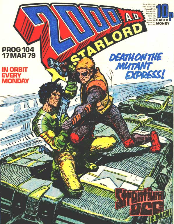 The first issue I got as a regular reader was Prog 104 — Ron Smith’s first Dredd, the start of the fantastic Strontium Dog story “Journey Into Hell”