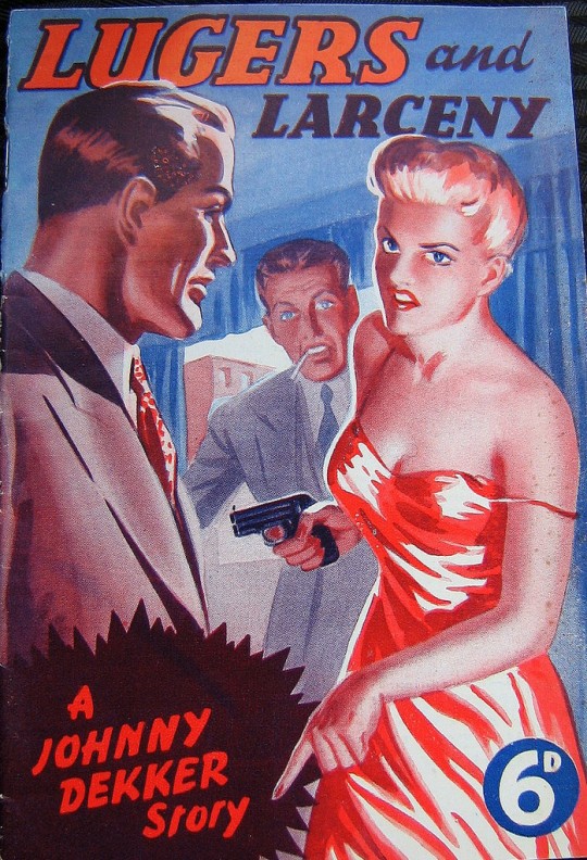After he returned to civilian life Anglo went looking for work in comics, and the first company he worked for was Gerald G Swan, followed by work for a lot of others, including Paget Publications, for whom he drew Wonderman, and Martin & Reid, where he ended up working as an editor, and for whom he wrote a number of books, including thirteen American-style private eye novels for which he also drew the covers, featuring the adventures of Johnny Dekker, and including titles like ‘Gowns and Gunsels’ and ‘Lugers and Larceny.’