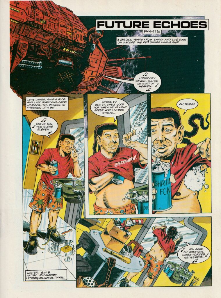 Rimmer is in search of some illicit exam-cheating tech, to land a much-lusted-for promotion, and Lister plans to acquire a cat to smuggle back on board as part of a nefarious scheme to return to Earth. Mainly they just want to get as far away from each other as possible. However, their objectives are scuppered when they receive a cryptic message… from the future.