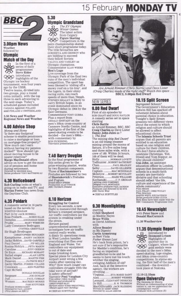 It premiered on BBC2 in 1988, starring Chris Barrie as Rimmer, Craig Charles as Lister, Danny John-Jules as Cat, Robert Llewellyn as the sanitation droid Kryten, and, initially, Norman Lovett as the ship’s computer, Holly.