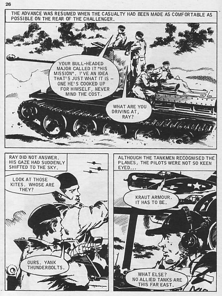 Allan’s story is fast moving as the tanks attempt to capture or destroy the potentially nuclear tipped missiles before they can be used against Allied cities, while the human story of whether the crews can trust their commander, on what is effectively a suicide mission, is well handled. I also liked the fact that while the British Sherman tanks that carried the big 17pdr guns, the Fireflys, are well known, the story taught me that there were actually Cromwells modified to carry 17pdrs as well and that they were called Challengers. Indeed it is the single Challenger tank that shows off Cam Kennedy’s attention to detail in his artwork as he accurately portrays it with six road wheels whilst the Cromwells have five.