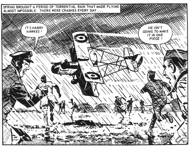While you would expect a comic strip about a fighter pilot to involve our hero jumping in his plane and flying off to shoot down many of the enemy before returning safely home, in Eagles, especially in the early stories, the reason for our hero not to make it back to base is more often because of mechanical failure of the aircraft he is flying rather than any enemy action against him. As for shooting down the enemy, it is a plot point in at least two of the stories in Volume 1 that Harry has not actually shot down a single German plane despite be considered a good pilot. It all makes for an ongoing story that is interesting in its non-conformity to the expected rules of an aviation comic strip and it certainly makes the reader think about the frailty of the planes that RFC pilots were flying back then without the safety of parachutes.