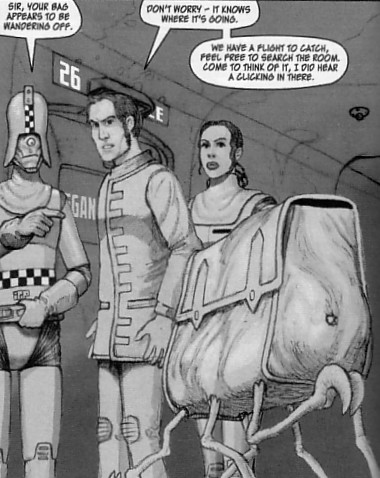 Leigh Shepherd’s greytone artwork, with its multitude of different aliens, is a great benefit to the book and while the art in the early tales is less accomplished, you can see how Leigh improves in confidence as the stories progress. It is always worth checking the backgrounds for in-jokes, with Judge Dredd helmets and Dr Seuss hats appearing or one bartender to looks like he is a Doctor Who fan, showing that the artist is enjoying himself as much as the writer is.