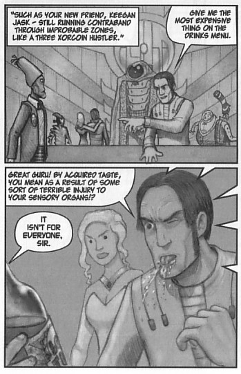 You know that slightly dodgy bloke in the pub who is known for exaggeration and who likes to embellish his stories? Well writer Paul Von Scott and artist Leigh Shepherd have given him a name, Keegan Jask, and sent him into space to the Omega Bar of the Heaven-11 space station.