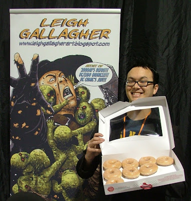 With copies of his Defoe 1666 graphic novel to sell, Leigh spent the day sketching for fans while being fuelled by Krispie Kreme doughnuts and coffee. On the other side, Garen politely had a cup of tea before beginning to sketch in, and autograph, copies of his bande dessinee style Rainbow Orchid graphic novel.