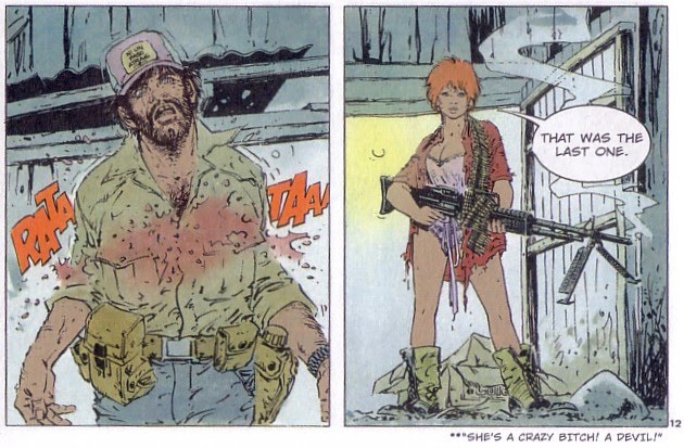 The previous book, SPADS, gave a lot of information about the character of XIII and just who he might be and was rather exposition heavy because of it. Full Red takes this one step further being virtually a book of two halves, both halves being violent and bloody. The first half is more languid and explanation heavy as the characters return to the US and discover that the military exercise is about to happen more quickly than expected, while the second half moves into 24 TV series mode as they have to quickly infiltrate the US military’s Supreme Strategic Headquarters in an attempt to prevent the coup taking place.