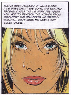 After the James Bond shenanigans in the second half of the previous book, Top Secret, the train fight on a stormy night at the start of this one comes as no surprise, especially since fights in the rain are such a XIII staple. Yet the aerial escape in a hot air balloon proves to be a short lived quiet interlude as XIII continues to make his way back to his friends in San Miguel via Mexico with a multitude of killers after him.