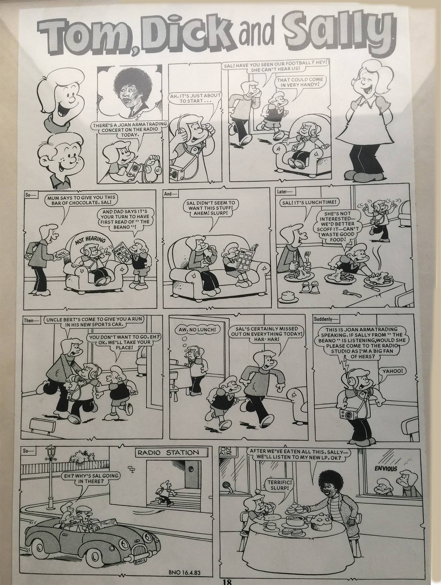 Today, “celebrity endorsement” is a big thing for BEANO – and appearances by film, music and TV stars are cover featured, major media happenings for the weekly comic. Back in 1983, Joan slipped in under the radar without even a cover mention, even though, at the time, a recently-released single, “Drop the Pilot“, had recently enjoyed a ten-week stay in the UK Singles Chart – considered now to be one of Armatrading’s biggest hits.