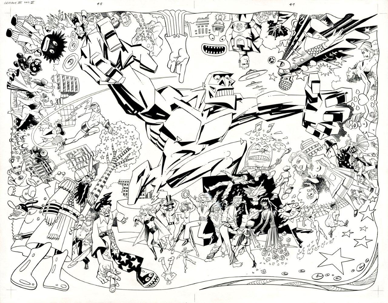 It is in League of Extraordinary Gentlemen that Kevin O’Neill reaches the apogee of his draughtsmanship and graphic storytelling. His pages evoke the intense detail and crosshatching of nineteenth-century illustration and combine a lavish sensuality with many witty references to the literature and artistic imagination of each book’s respective era. His detailed artwork reveals new delights with every viewing. O’Neill is truly in a ‘league’ of his own.