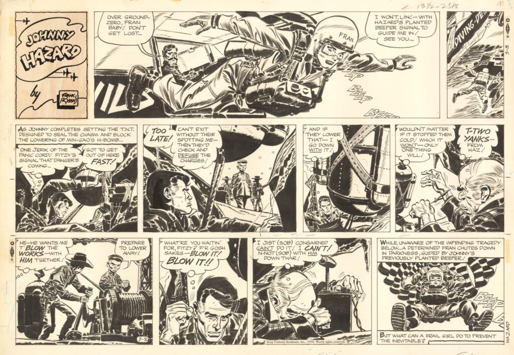 If you really want to see Franklin “Frank” Robbins at his best, you should, for example, track down the Hermes Press collections of his newspaper strip, “Johnny Hazard” launched in 1947, although, be warned the physical editions can be quite expensive. (They’re available digitally through Amazon, too). Or his work on titles such as Weird War, House of Mystery, or House of Secrets.