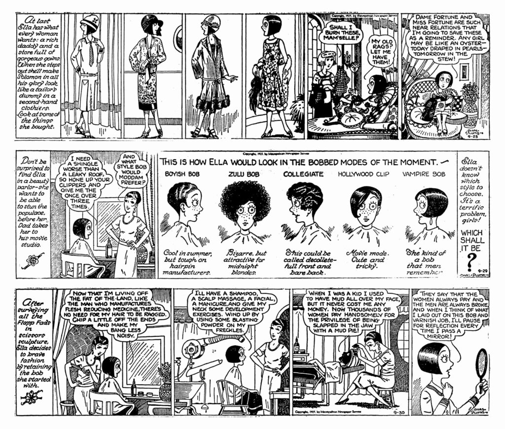 The strip has previously been documented online by Barnacle Press, Steve Smith describing it as “a female comic strip character with genuine character,” on Panels & Prose, “no small thing in an era of flappers, housewives and career girl stereotypes.”
