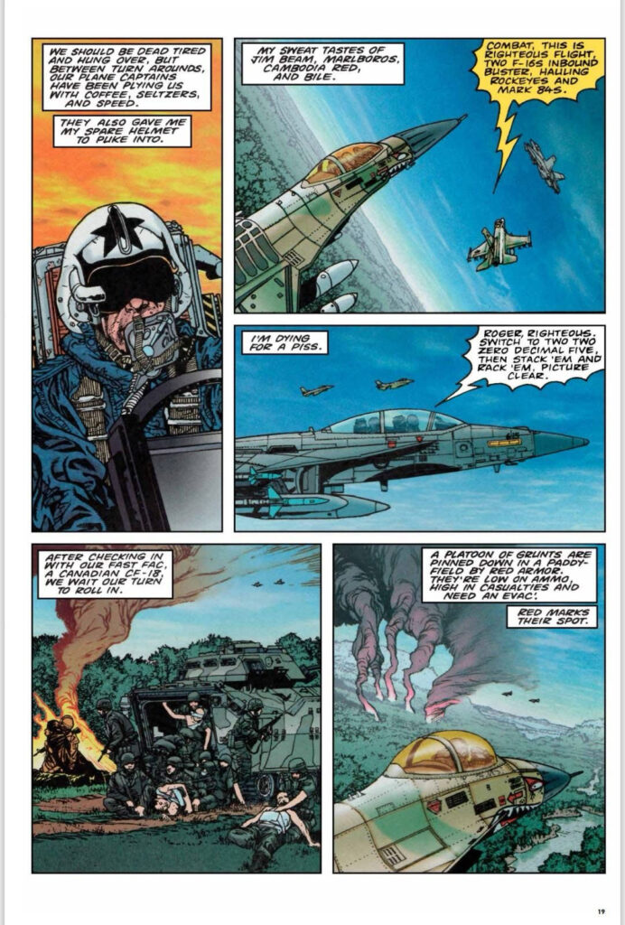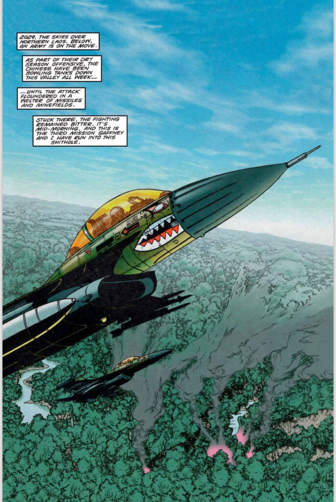 The story, set in a near future war scenario, centres on a pilot, Wesley Anger, who’s captured by a covert military team and introduced to captured alien technology that allows pilots to be ‘jacked in’ to the craft, forming a symbiotic link with the ‘living’ plane, providing full 360 degrees vision.