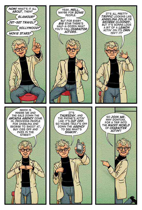 “Look out, Verity Bourneville doesn’t so much break ‘the fourth wall’ to address you directly, as demolish it and grab you to join her and her mates for all sort of escapades inside the panels,” enthuses Paul Gravett of the story. “Terry Wiley is at the top of his game in VerityFair, fashioning this ’45-year-old car-crash of a personality’ into the most feisty, fascinating, personable, unpredictable, multi-faceted new character in 21st-century British comics. She’ll tell you what it’s all about. Brilliant!”