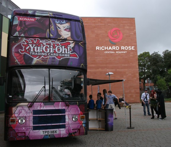 For most attendees the first experience of the day was turning the corner to find the gaudily painted Yu-Gi-Oh! Summer Tour double decker bus parked at the entrance to the school. As much as it screamed “manga gaming”, what event organiser wouldn’t want to have something like this parked at the entrance to their event where all the cars on one of the main roads into the city centre could see it?Barely 10 minutes’ walk from Carlisle city centre, the Academy is a ultra-modern, fee-paying secondary school and I’m sure that a lot of attendees’ reactions to the venue would have been the same as mine – “wow, my school was never like this”.