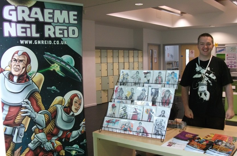 Artist Graeme Neil Reid has worked on both 2000AD and the Judge Dredd Megazine, with original artwork from both for sale on the day, as well as a selection of books including Con Iggulden’s Dangerous Book Of Heroes. Graeme’s blog is here and he also is part of the daily Scotch Corner art blog here.