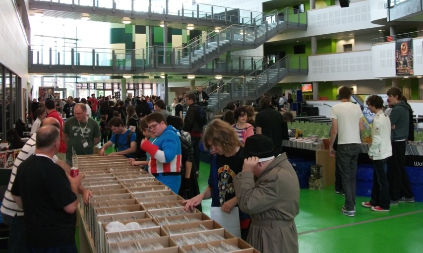 The dealers tables stretched around the walls, passed the talks area and over into the far corner – there was even a radio-controlled cars section out the back door. While not defined as such, the dealers area could easily have been subdivided as a Games Zone with collectible card games, video/computer games and table top games, a Shops Zone with tables populated by the organisers Waterstones as well as a wide variety of other local businesses from toys to model kits to unusual sweets, and finally the Comics Zone with selection of small press along with sales and signing tables for the comics guests.