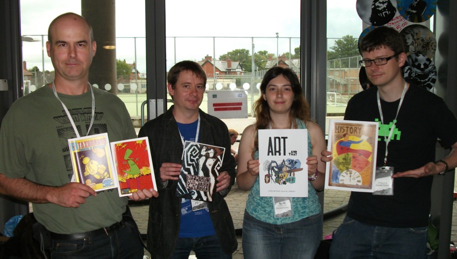 The North East’s Paper Jam Comics Collective came in force to the North West with a multitude of different titles for sale. Below from left to right we have Martin Newman with Taxonauts, Paul Thomson with Tales From The Hollow Earth, Brittany Coxon with Art… And That, and James Wilkinson with History… And That. There are more details of Paper Jam and the various creators who make up the Collective on their blog.