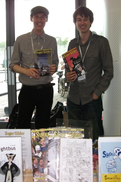 Daniel Clifford is a busy man writing both Halcyon and Tenderfoot and Sugar Glider. Wearing his Art Heroes hat (above right), Daniel and artist Lee Robinson (left) create and publish Halcyon and Tenderfoot as well as hosting comics workshops. Wearing his Sugar Glider hat (below left), a hat that admitted looks much the same as his ‘other’ one, he writes the various Sugar Glider titles with artwork by Gary Bainbridge (right). There are more details of Halcyon and Tenderfoot at the Art Heroes website and more details of Sugar Glider at the Sugar Glider Comics website.