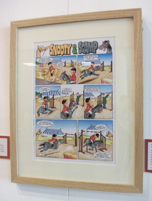 After the refreshment and signing break, former DC Thomson editor Bill Graham gave a talk on Willie’s work for DC Thomson concentrating on the work that both men had done for what Thomson’s refer to as “Pony Stories”, the comic strips they produce for the European Egmont comic Wendy. This explained one of the pages in the exhibition which no one seemed to recognise, a humorous horse strip called Snooty and Scamp. This was created for Wendy with Bill writing and Willie illustrating some 800 pages of the strip over the years which was then translated into German and Swedish amongst other languages. The exhibition, along with Bill’s fond memories and amusing anecdotes, were a fitting tribute to his friend and colleague.