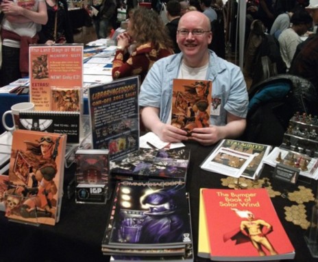 Writer and editor Paul Von Scott is well known in the British comics scene for the titles Solar Wind and OmniVistaScope. His latest title is The Last Days Of Man, a compilation of all the various work that he has done with artist Paul McCaffrey, and which is subtitled A Study Of Human History By Professor Brabblepap. Paul also creates role playing games as well as the range of Midlam Miniatures RPG figures and he had a selection of these for sale as well.