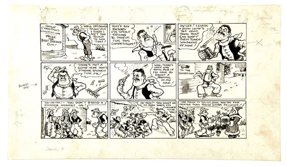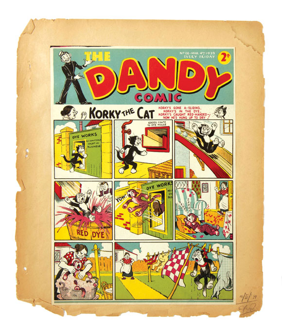 Comic Book Postal Auctions Summer 2013 auction has another wide range of British comics lots, from the first issue of Comic Cuts published in 1890 (one of only eight known copies to exist), Radio Fun Number One from 1938, a fine run of early Dandy comics and Desperate Dan’s fourth appearance original artwork by Dudley Watkins , from the Dandy No 4 Christmas issue 1937 – Dan’s first use of the famous blow-torch for shaving!